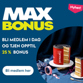 Bonus er som Maxbo-penger, og kan kun brukes ved kjøp hos Maxbo.